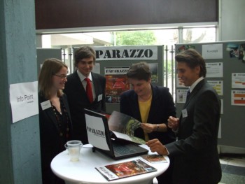 Nina Lünnemann, Pascal Bruno (Trade Fair Team Paparazzo), Prof. Claudia Loebbecke (Uni Köln, Sem. f. ABWL, Medien- und Technologiemanagement) und Daniel Ladic (Trade Fair Team Paparazzo)