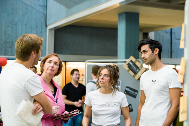 Tim Schumacher (Eyeo) und Angela Freimuth (Vizepräsidentin Landtag NRW) am 'eVac'-Stand
