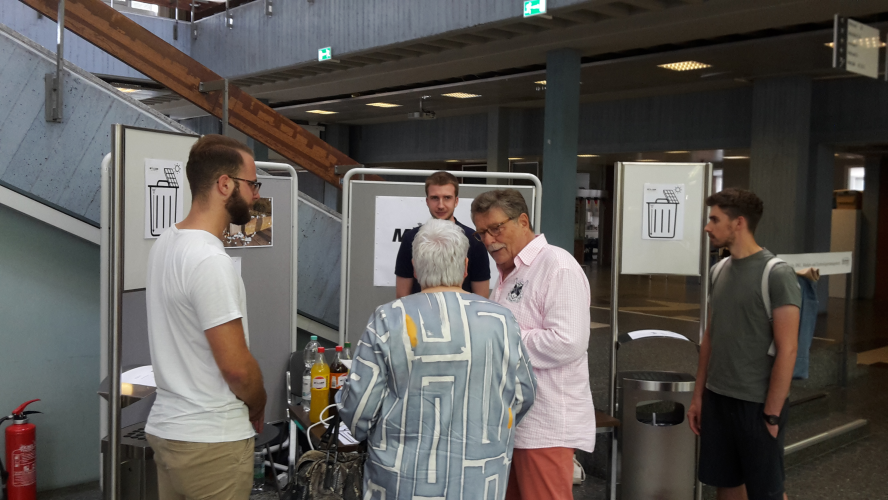 Elisabeth Slapio (IHK Koeln) und Fritz Schramma am 'MÜL.LEER'-Stand