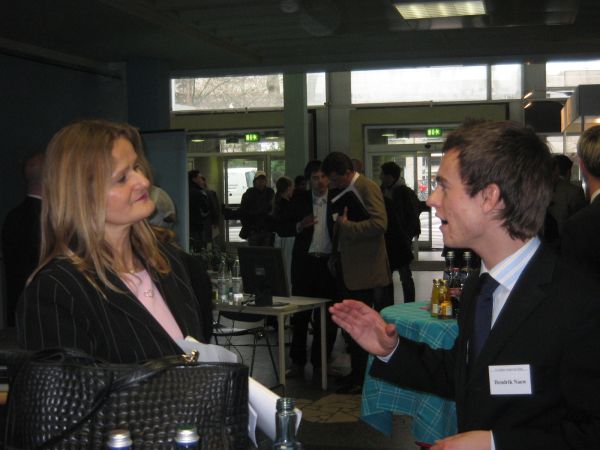 Ilona Schulz (Rechtsrheinisches Technologie- und Gründerzentrum GmbH), Hendrik Naew (Trade Fair Team Skyline News)