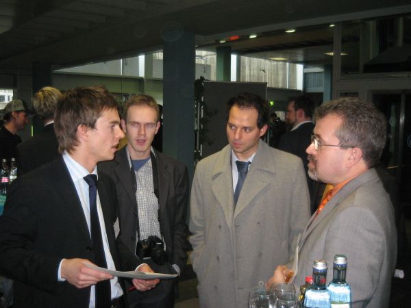 Hendrik Naew (Trade Fair Team Skyline News), Maik Herrmann (Seminar für Medienmanagement), Nico Katirtzie (Sparkasse KölnBonn), Rainer Slomma (Sparkasse KölnBonn)